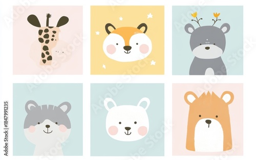 Obraz premium Cute Cat Faces Pattern Frame Background Illustration