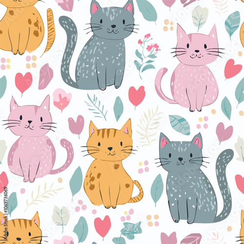 Obraz premium Cute cat hand drawn seamless pattern