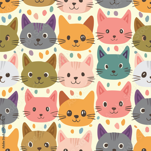 Obraz premium Cute cat head hand drawn seamless pattern