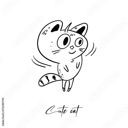 Fototapeta premium Cute cat illustration in outline style. Simple and charming illustration