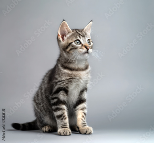 © Photocreo Bednarek, Obraz premium Cute cat in a studio on a gray background. Generative AI