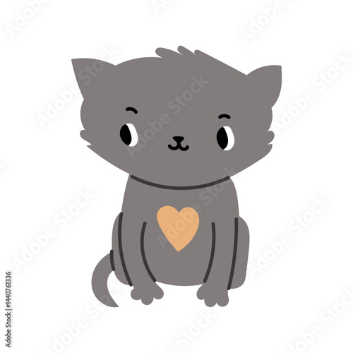 Obraz premium Cute cat in love sticker, vector cartoon illustration