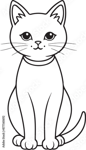 © Swapna graphics, Obraz premium Cute cat line art illustration icon design, solid white background