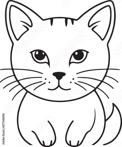 © Swapna graphics, Obraz premium Cute cat line art illustration icon design, solid white background