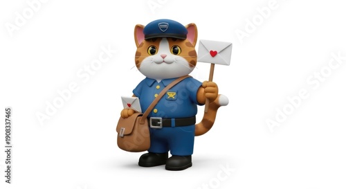 © Kandang, Fototapeta premium Cute Cat Mailman Delivering Letters with Heart Icon