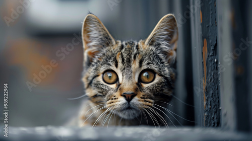 © whoopwhoops, Fototapeta premium cute cat, multi colored kitty with curious eyes