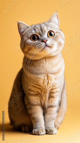 Obraz premium Cute Cat Sitting on Yellow Background.