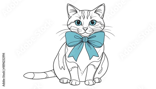 Obraz premium Cute Cat Wearing Blue Bow.