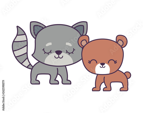 © djvstock, Fototapeta premium cute cat with bear animals isolated icon