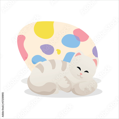 © Pixel-Shot, Obraz premium Cute cat with Easter egg on white background