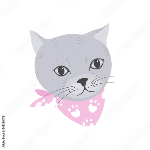 Fototapeta premium Cute cat with scarf isolated in flat vector.