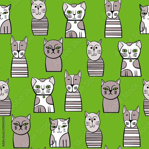 © Shanti Shanti, Fototapeta premium Cute Cats. Cartoon vector seamless pattern.