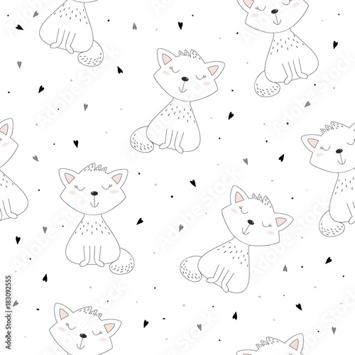 © iryna_boiko, Obraz premium Cute cats colorful seamless pattern background