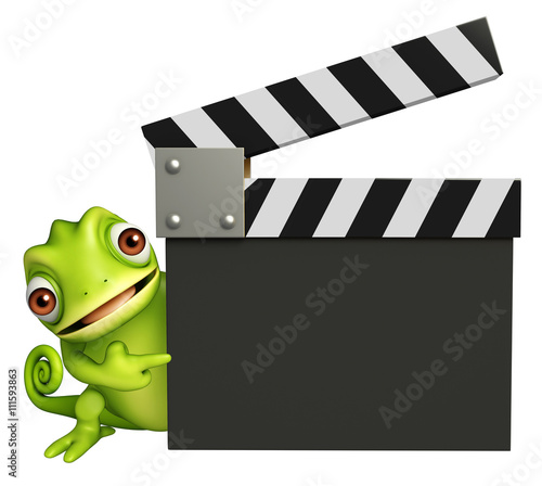 © visible3dscience, Naklejka premium cute Chameleon cartoon character with clapper board