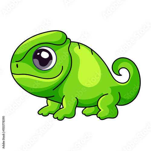 © Moezza, Obraz premium Cute Chameleon Cartoon Kawaii Sticker. Character Vector Illustration