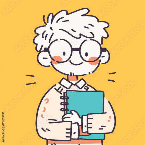© Sukifli Dakheng, Obraz premium Cute character holding notebook with cheerful expression