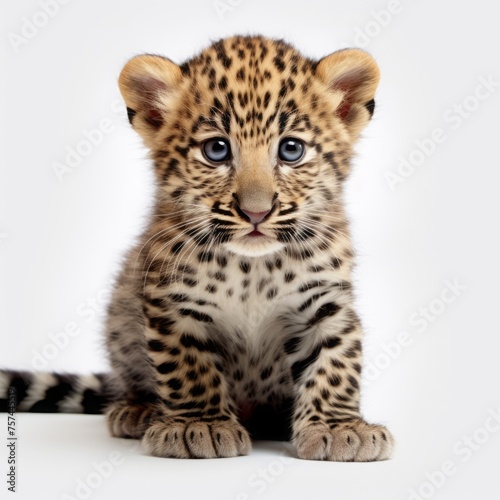 © MaskaRad, Fototapeta premium cute charming leopard cub on a white background. kitten, feline.