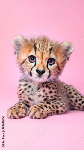 Obraz premium Cute Cheetah Cub on Pink Background.