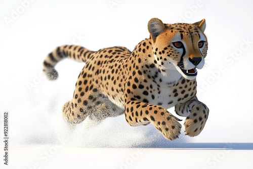 Obraz premium Cute Cheetah in Mid-Sprint: A cheetah running at full speed against a white...