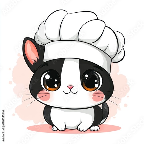 Obraz premium Cute chef cat cooking; pink background; kids' book illustration