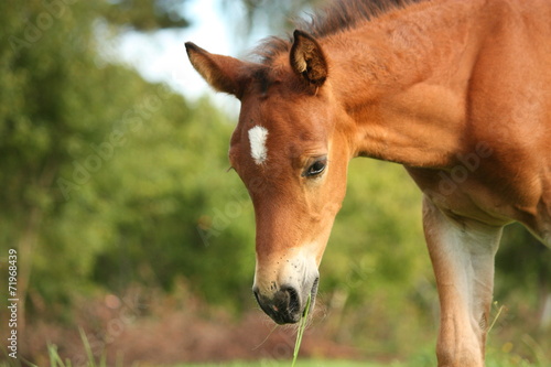 © virgonira, Fototapeta premium Cute chestnut foal at the grazing