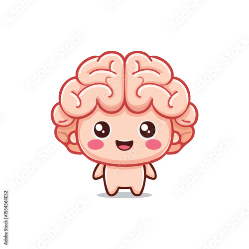 Fototapeta premium Cute Chibi Brain Character – Simple Flat Vector with Bold Outlines and Fun...