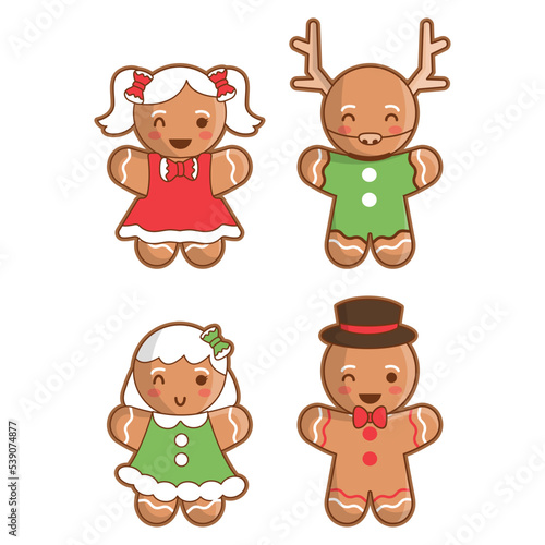 Obraz premium Cute Chibi Christmas Gingerbread man vector illustration.