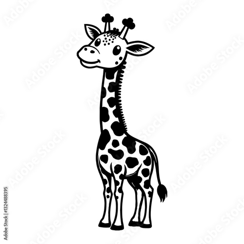 © Reytr, Fototapeta premium Cute Chibi Kawaii Giraffe Full Body Front View with Black and White Outline Line Art Drawing