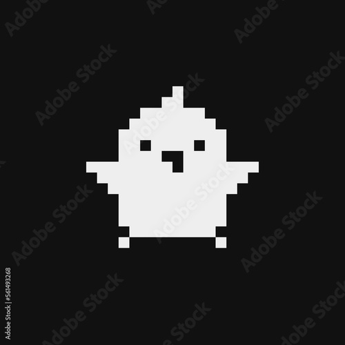 Obraz premium Cute chick emoji, pixel art style icon element design for logo, app, web, sticker. Isolated abstract vector illustration. Video game sprite.