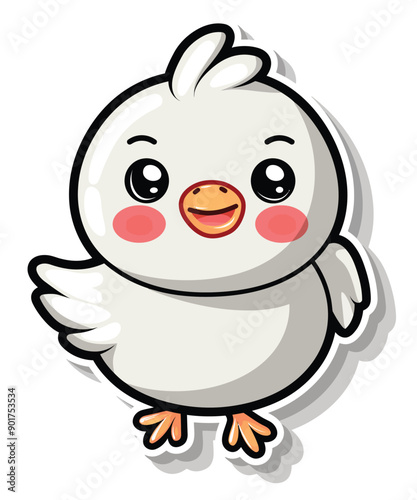 © Sadia, Obraz premium Cute chicken duck hand drawn flat stylish cartoon sticker icon