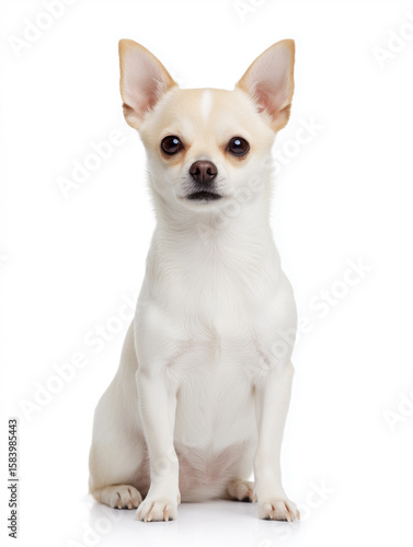 Obraz premium Cute chihuahua poses proudly against a plain background in a well-lit indoor studio setting