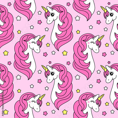 Obraz premium Cute childish seamless pattern with cartoon character of magic unicorn