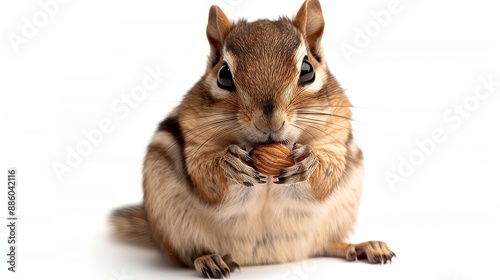 © atipong, Fototapeta premium Cute Chipmunk eating almond. isolated on white background