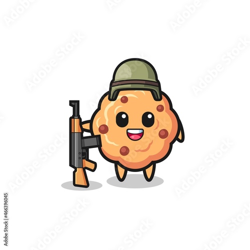 Fototapeta premium cute chocolate chip cookie mascot as a soldier