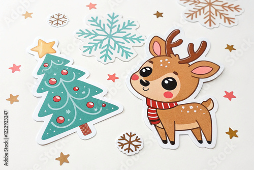Fototapeta premium Cute Christmas deer and tree stickers.