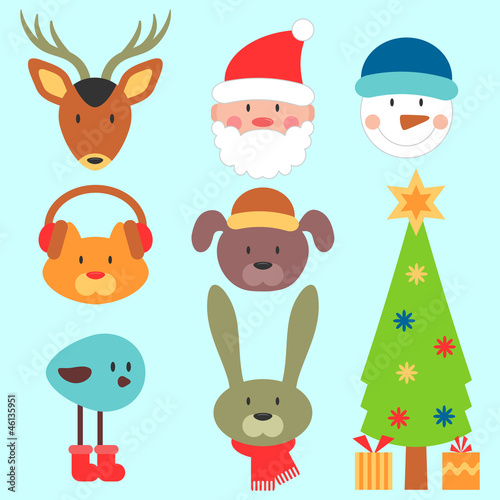 © paw, Naklejka premium Cute christmas elements set