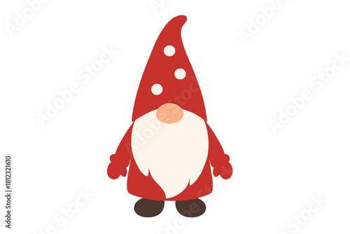 © Антон Сальников, Naklejka premium Cute Christmas gnome wearing a red pointed hat and long white beard standing pose