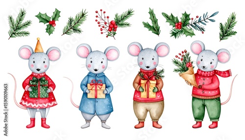 © hawa, Fototapeta premium Cute Christmas mice in winter clothes