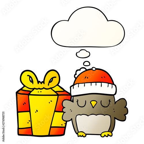 Naklejka premium cute christmas owl and thought bubble in smooth gradient style
