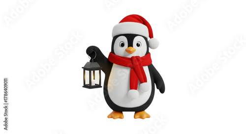 © Dabasish, Obraz premium Cute christmas penguin holding a lantern isolated on transparent background