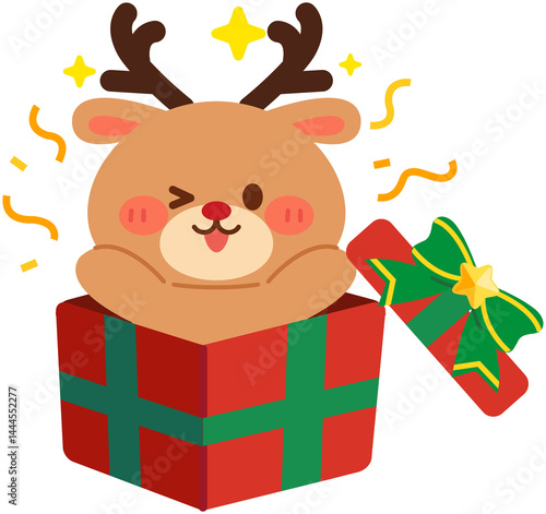 © Otomedream, Naklejka premium Cute Christmas Reindeer Gift Box