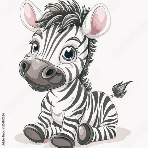 © Алла Морозова, Obraz premium Cute chubby baby zebra illustration with soft colors and playful expression on white background