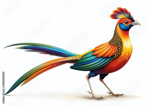 © prapatsorn, Obraz premium Cute Circular Bird Walking, Colorful Tail, Flat Style Illustration - Perfect for Prints & Decor