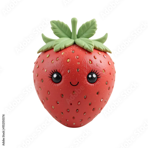 Obraz premium Cute Clay Strawberry Happy Fruit Kawaii Food Adorable Design Red Berry Sweet...