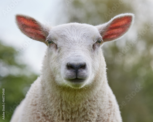 Fototapeta premium Cute close up head shot of white lamb with plenty of details