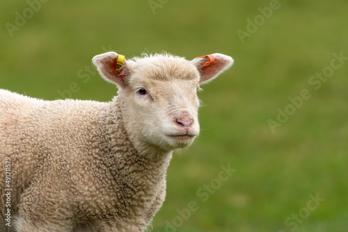 Fototapeta premium Cute closeup portrait of a young lamb in early Spring, UK