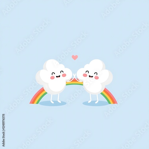 Obraz premium Cute Clouds Holding Hands Over Rainbow Cartoon Illustration for Children
