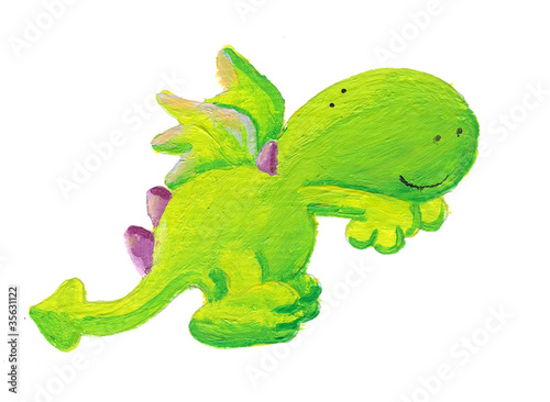 © andreapetrlik, Fototapeta premium Cute clumsy little dragon trying to jump