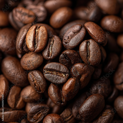 © Hoseein, Naklejka premium Cute Coffee Cup with Smiley Face and Flying Coffee Beans – Creative Morning Concept