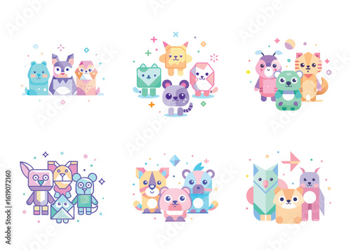 Obraz premium Cute Collection of Stylized Animals in Pastel Colors, arranged in groups